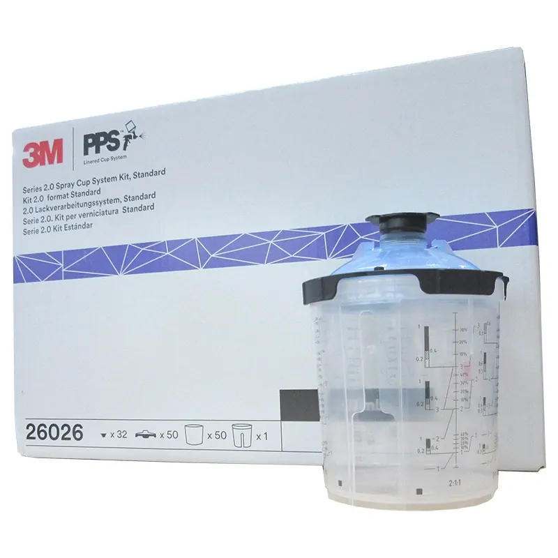 3M PPS Series 2.0 Spray Cup System is our next generation, highest performing disposable spray cup system for mixing/measuring, filtering, spraying in any direction (360° spray rotation) and protecting coatings not in use.