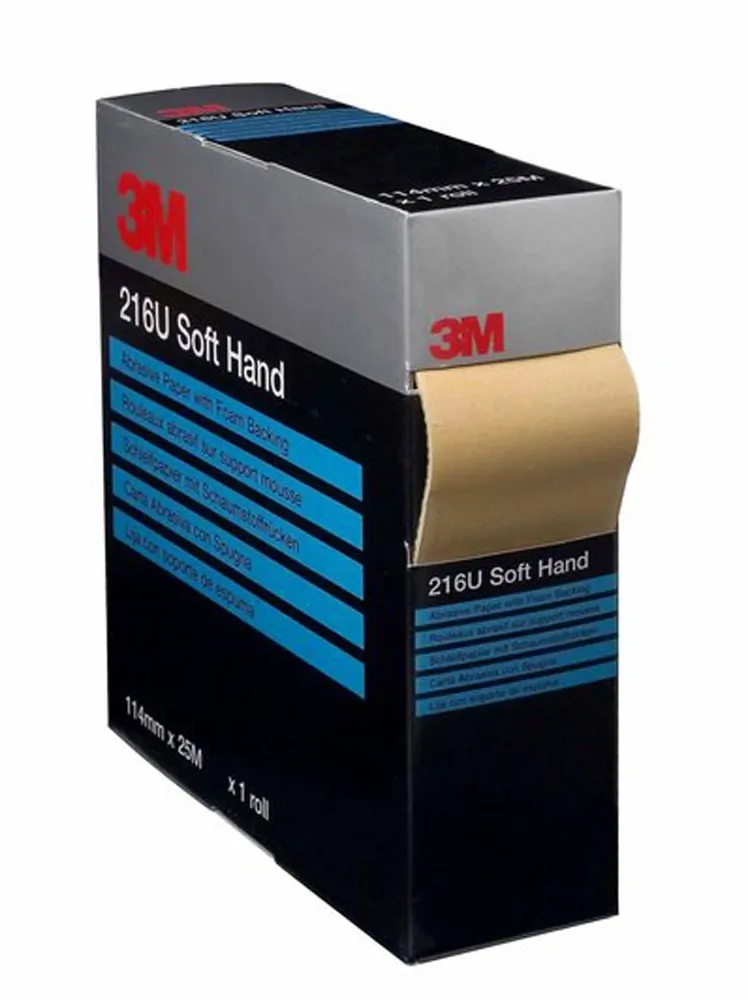 3M Soft Hand Abrasive Roll 216U have a soft foam backing (soft hand) that allows for more uniform pressure and conformability during the sanding process.