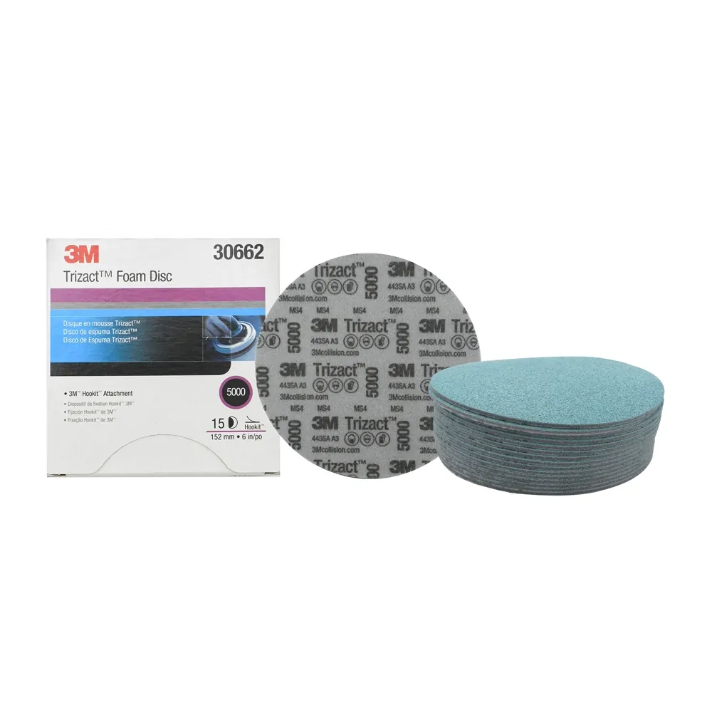 3M Trizact Blending Disc 5000 grit is a foam disc for removing P3000 grade sand scratches on painted surfaces prior to use of 3M Perfect-It polishing system.
